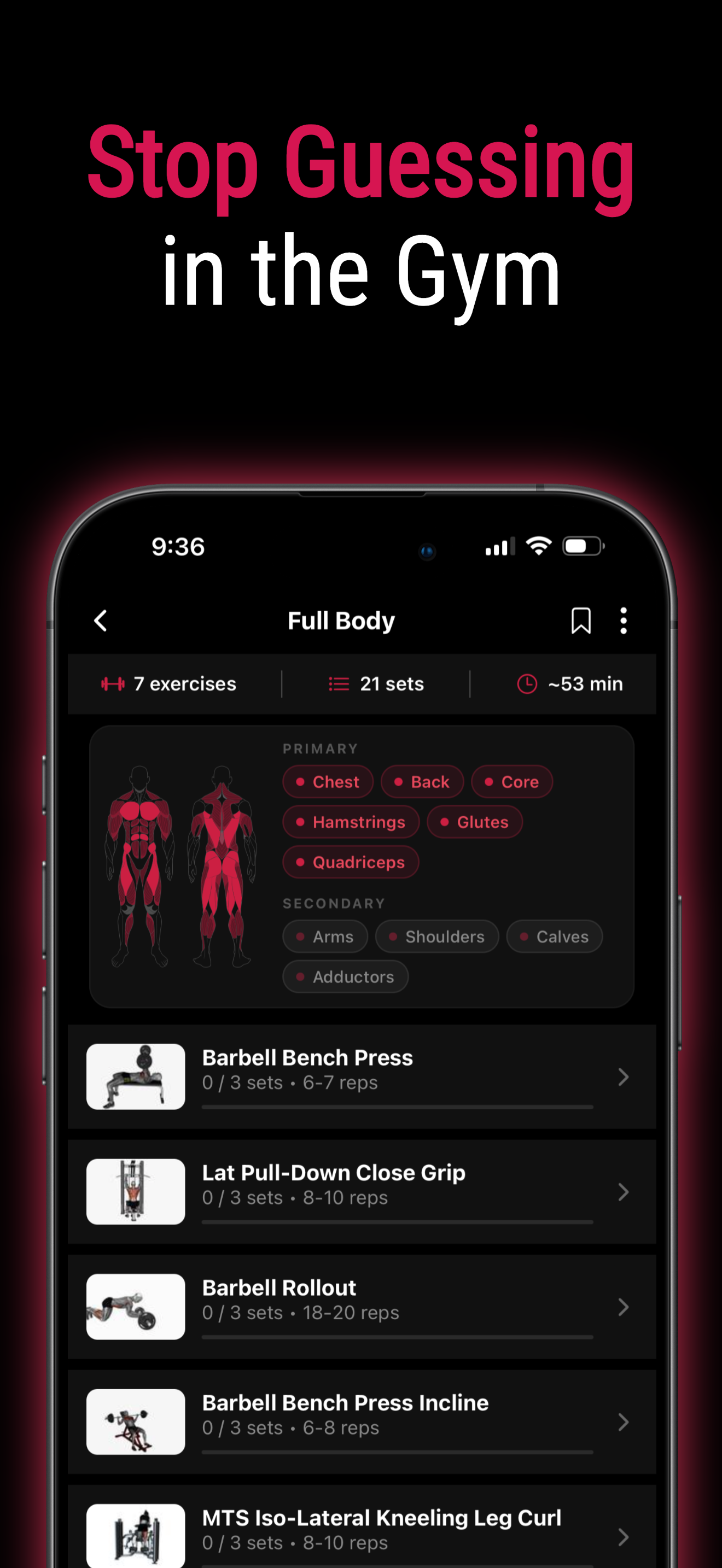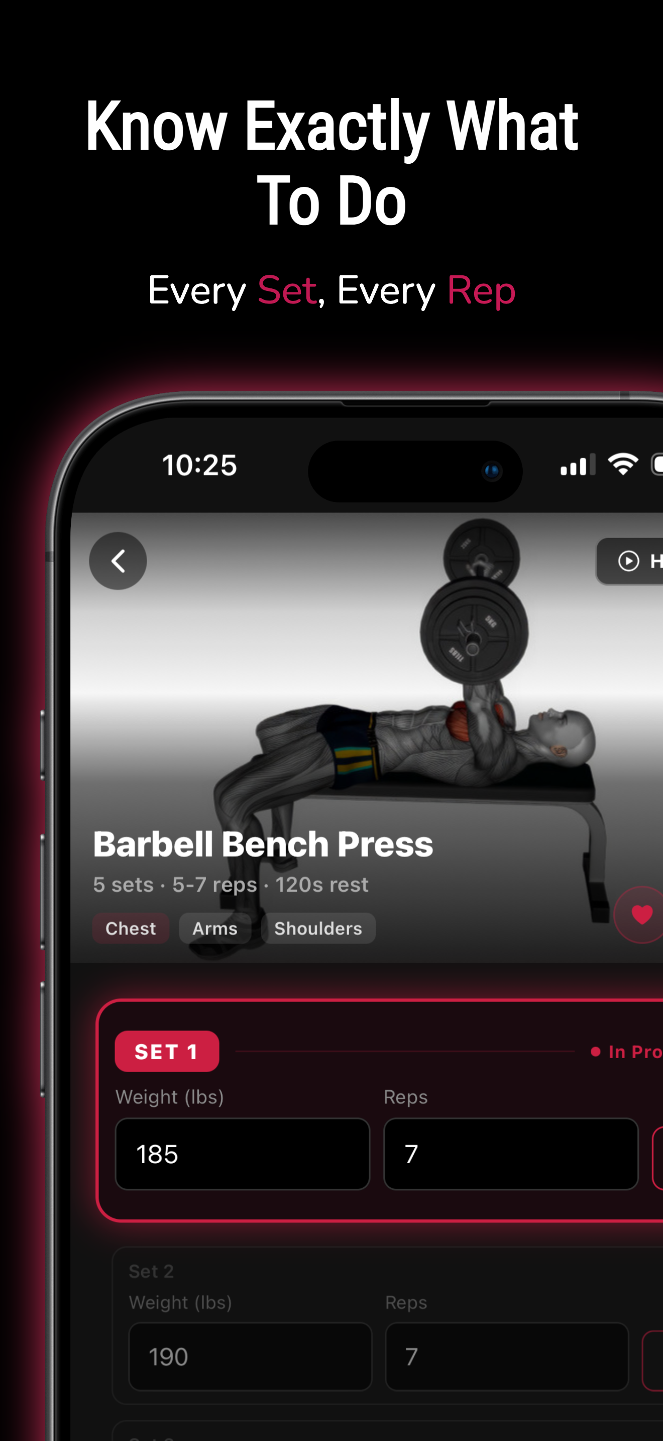 Weights and reps automatically adjust based on your previous performance. No more guessing what to lift next.